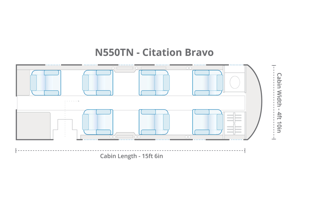 A modern spin on a proven design, the Bravo is a direct upgrade from the popular Citation II. It offers a quieter cabin, trailing-link landing gear, and more powerful and efficient engines.